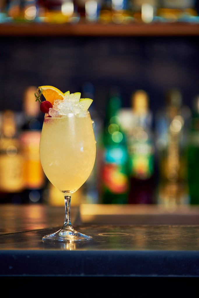 Add ice and garnish with a slice of orange.
