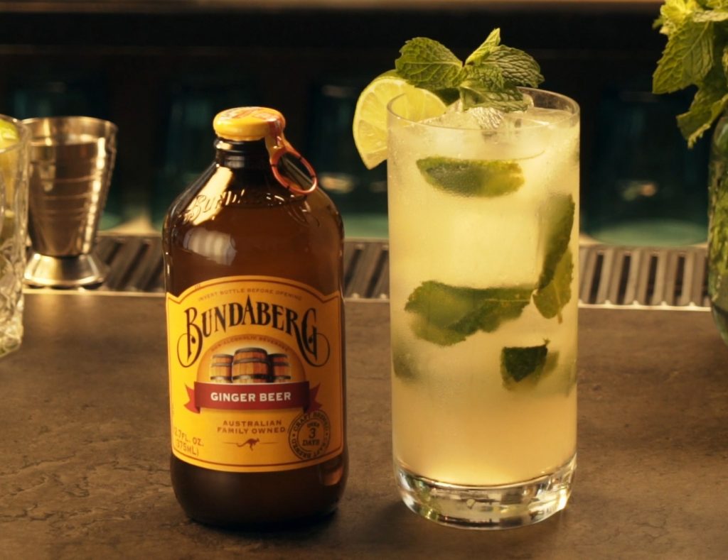 Top with Bundaberg Ginger Beer and garnish with mint and lime wheel