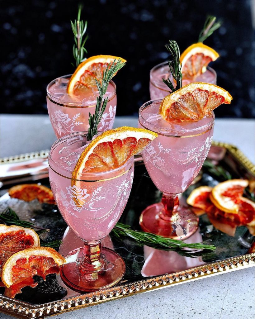 Pour over ice and garnish with dried grapefruit and fresh rosemary