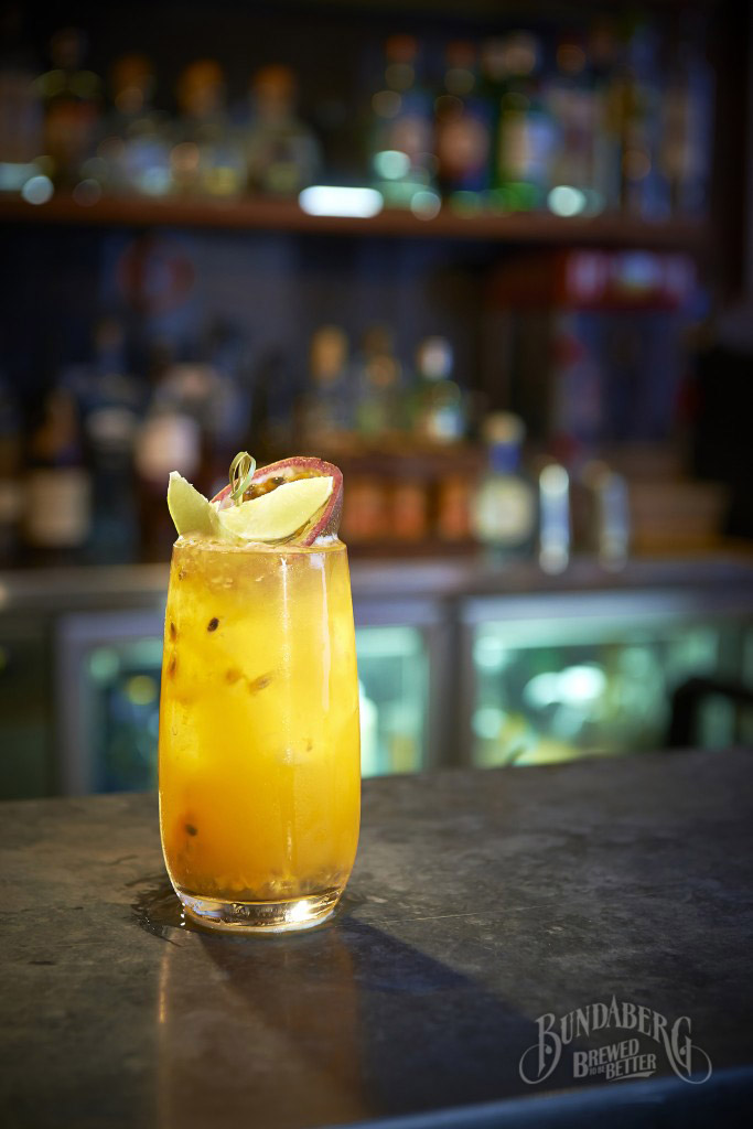 Shake, then strain into a glass and top with Bundaberg Passionfruit