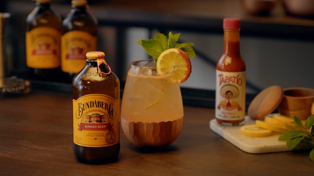 Top with Bundaberg Ginger Beer and garnish with a lemon wheel and mint.
