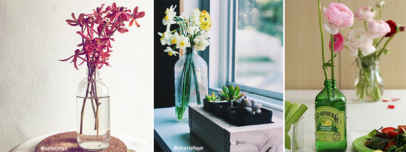 Empty a few Bundaberg drinks (by drinking them of course) and keep the bottles! Give them a quick rinse and pop in some bright flowers – use similar coloured flowers to the labels for bonus points.