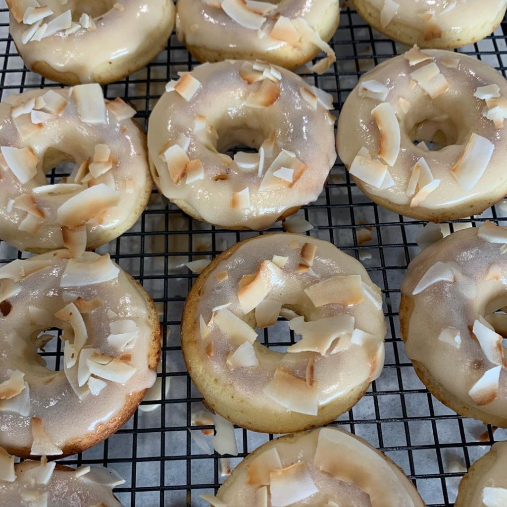 Preheat oven to 170 degrees and grease donut pan or mini muffin pan.