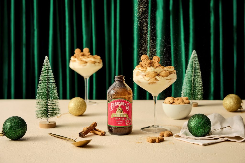 Place a spoonful of the mascarpone mixture into the bottom of the martini glass, dip a Savoiardi biscuit into jar of Spiced Ginger Beer syrup for 1 second and place on top of the cream mixture in the glass. To help the Savoiardi biscuit fit into the glass, trim to size before dipping and adding beside the first one. Repeat until a full layer has been added. Repeat with a layer of cream mixture and add another layer of Savoiardi biscuits. Finish off with another layer of cream mixture.
